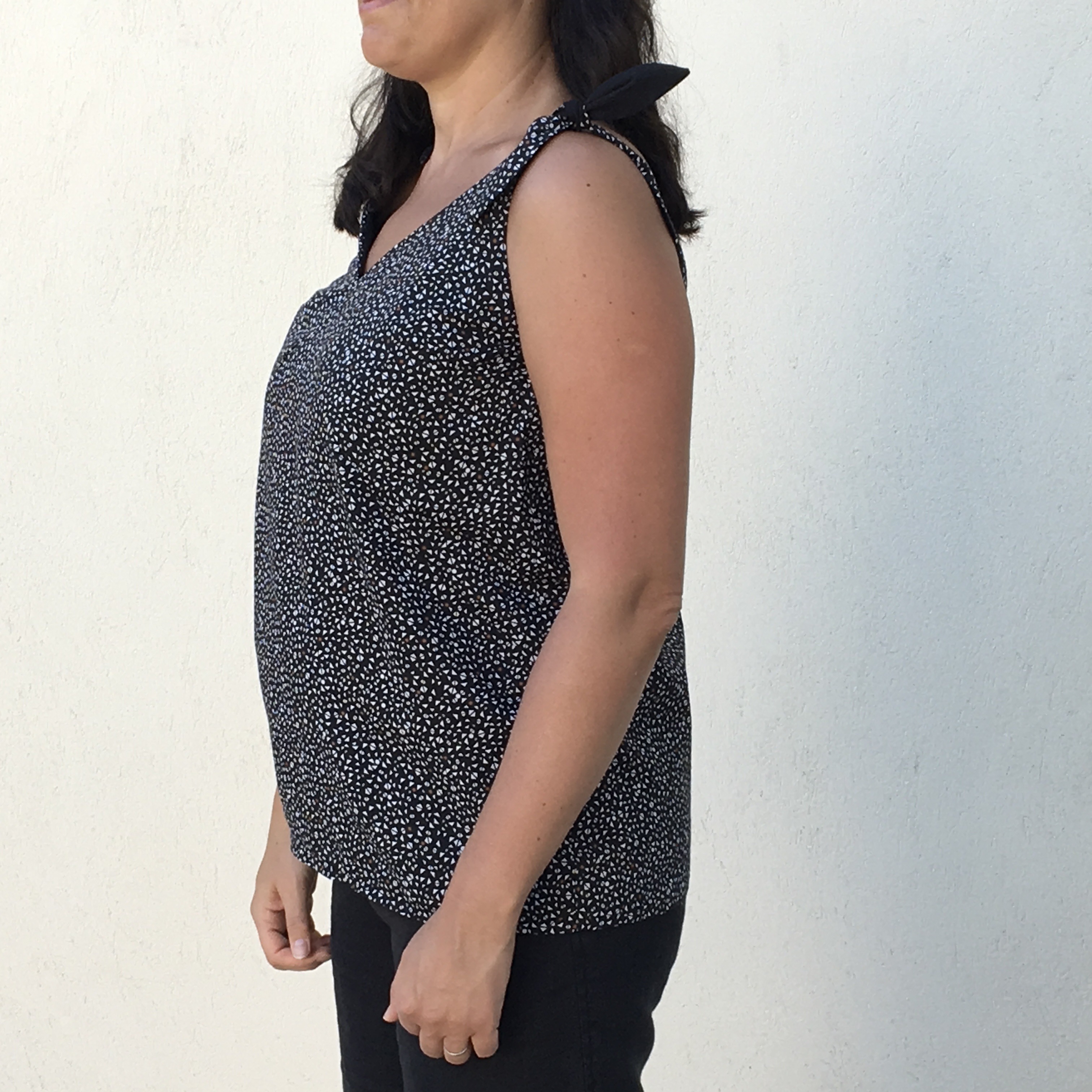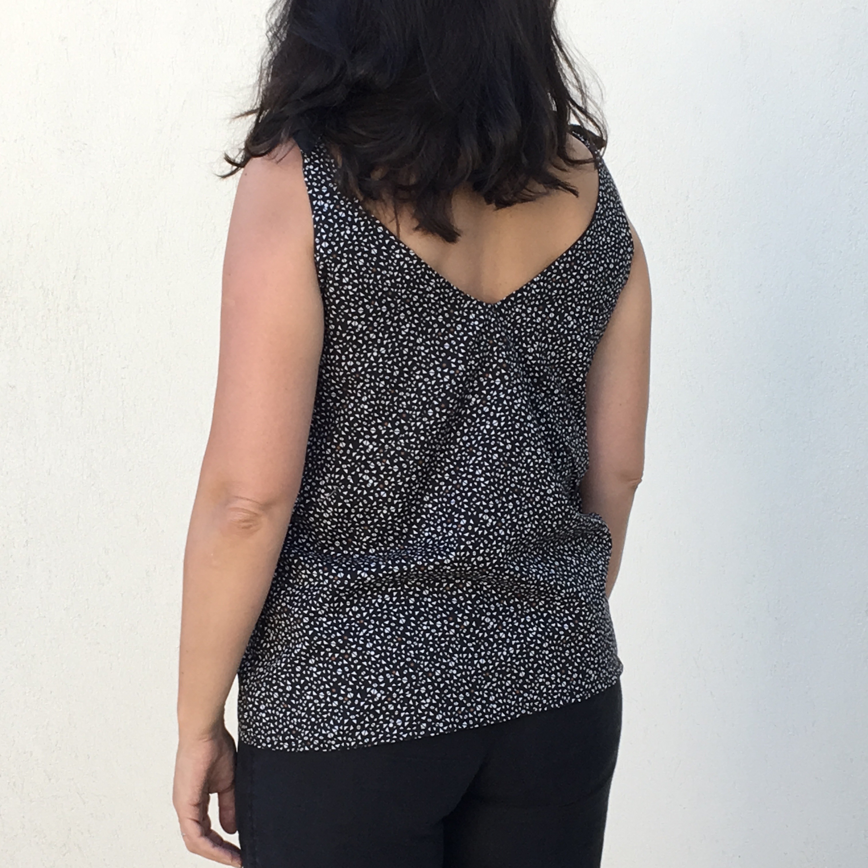 Ce petit haut est idéal d’ailleurs si vous avez un tissu transparent à coudre puisqu’il est doublé sur le devant et sur le dos.