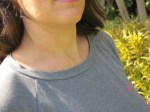 La difficulté du patron outre le fait de coudre du jersey réside dans la pince des manches qu’il faut coudre en haut de la manche. C’est une couture qui doit mourir. A mon sens, un schéma et/ou une explication complémentaire auraient été les bienvenus. En effet, le risque c’est qu’un bec se forme. Je n’y ai pas échappé même si j’ai cousu en arrondi et fait mourir ma couture… Mon tee-shirt sera souvent sous un gilet ou un pull alors ce n’est pas trop grave mais j’aurai préféré réussir parfaitement cette partie.