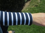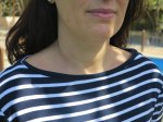 En dehors de cette difficulté, rien de spécial à signaler, sauf que vous vous apercevrez que mes rayures ne sont pas droites… En effet l’astigmate que je suis a un petit problème pour tout voir au meme niveau… si si je vous promets… d’ailleurs repasser un tissu à rayures est pour moi source de tournis… C’est dommage j’adore les rayures, les marinières…