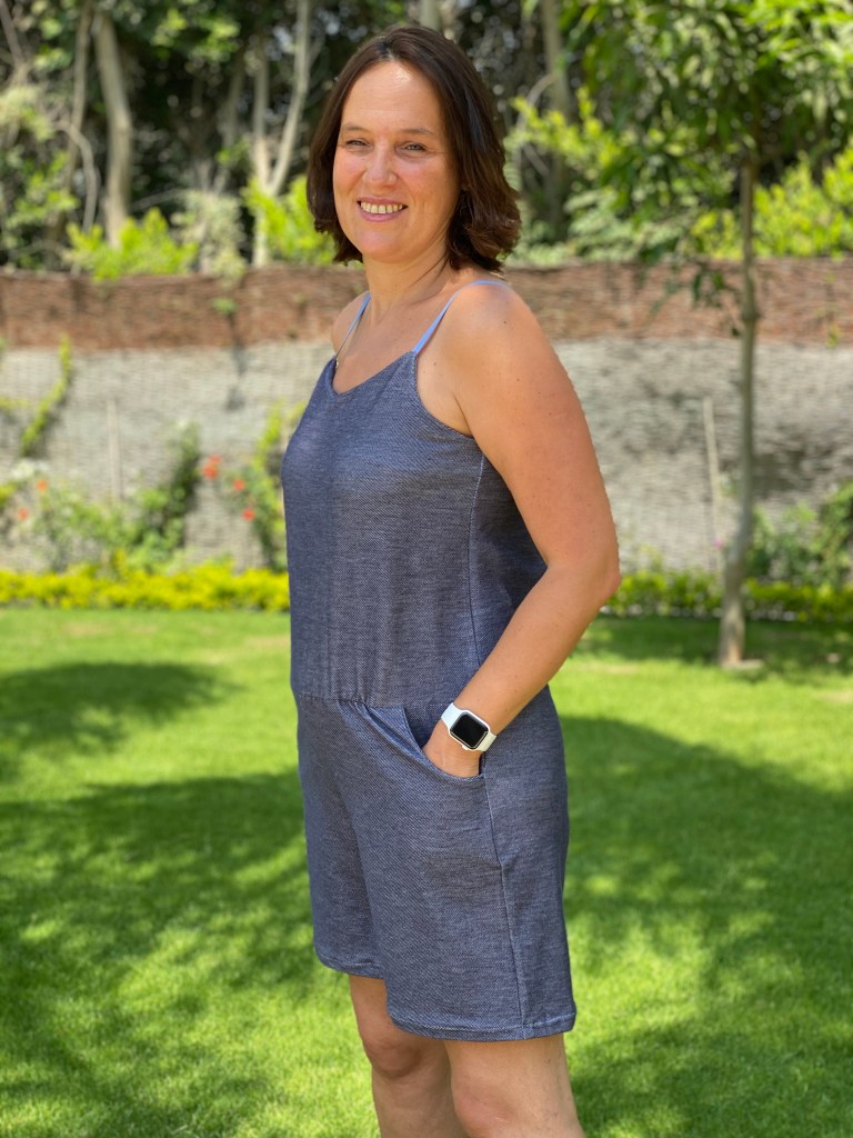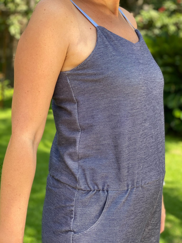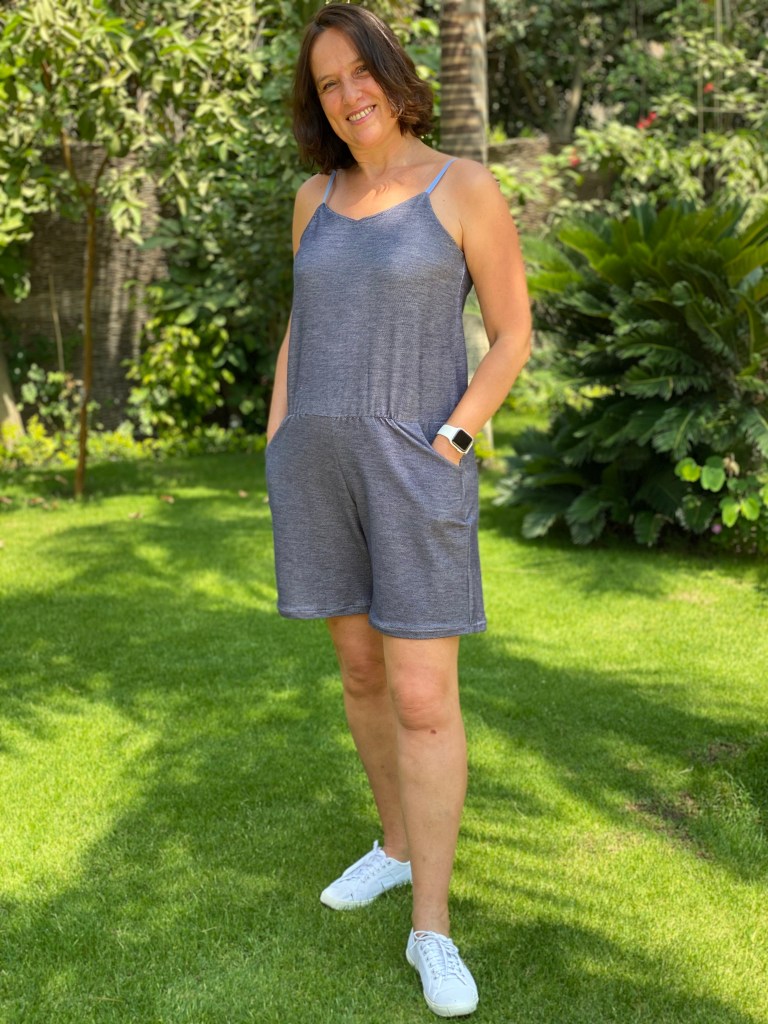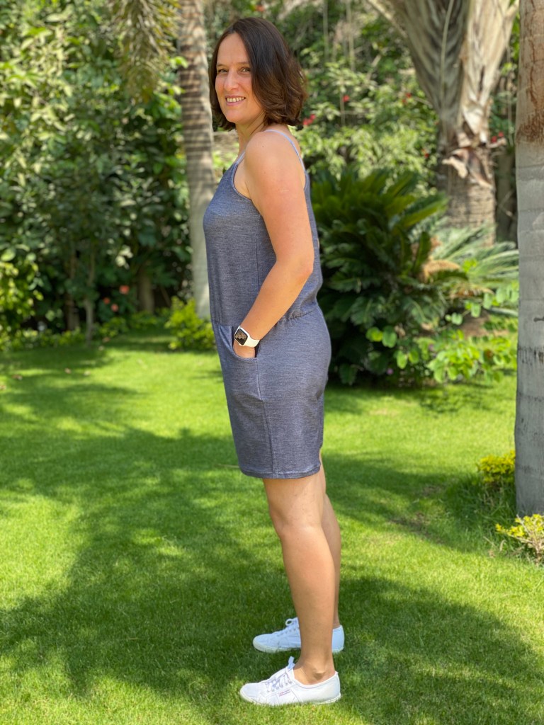 Grace à ce test, je suis sortie de ma zone de confort car je n’avais pas de combishort en maille dans mon armoire. J’en ai une dans mon armoire du sud de la France mais je vous avoue l’avoir porté une fois voire 2 maxi, alors que celle si a déjà été portée à plusieurs reprises depuis que je l’ai terminée. C’est le vêtement parfait quand il fait chaud et très confortable. Si je retrouve du tissu adéquate j’en referai une mais il faut que je trouve les petites boucles pour les bretelles et ici c’est pas gagné.