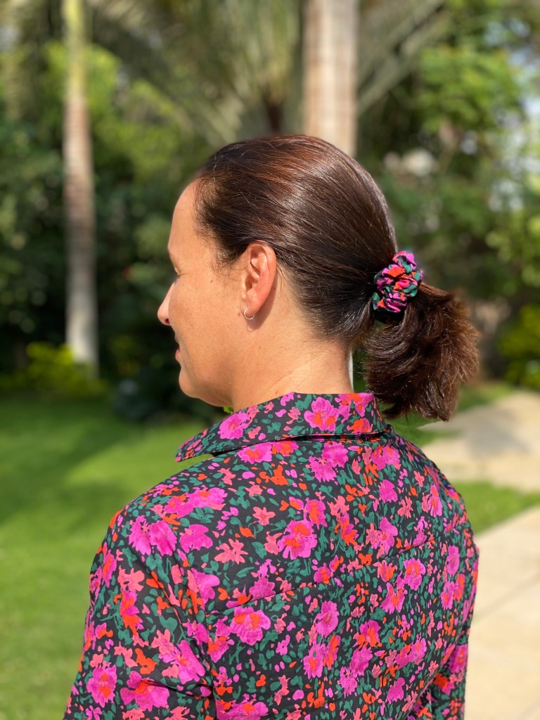 Je voulais absolument une valeur sure coté patron pour ne pas gâcher ce joli coton fleuri de chez Pretty Mercerie, d’ailleurs je suis allée au bout de mon coupon en cousant avec les chutes, un masque (accessoire de rigueur pendant encore quelques mois je suppose) et un chouchou toujours utile. C’est désormais ce que j’essaie de faire pour limiter mes chutes qui ensuite s’entassent.