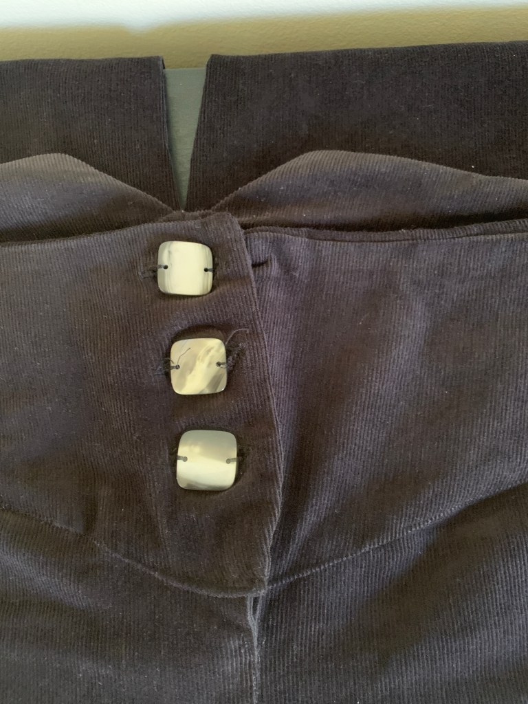 Le seul bémol sont les boutons que j’ai choisis. Je les changerai dès que je mettrai la main sur 3 boutons ronds noirs. En attendant mes boutons carrés feront bien l’affaire car je porte souvent mes pantalons avec un haut qui cache la braguette.