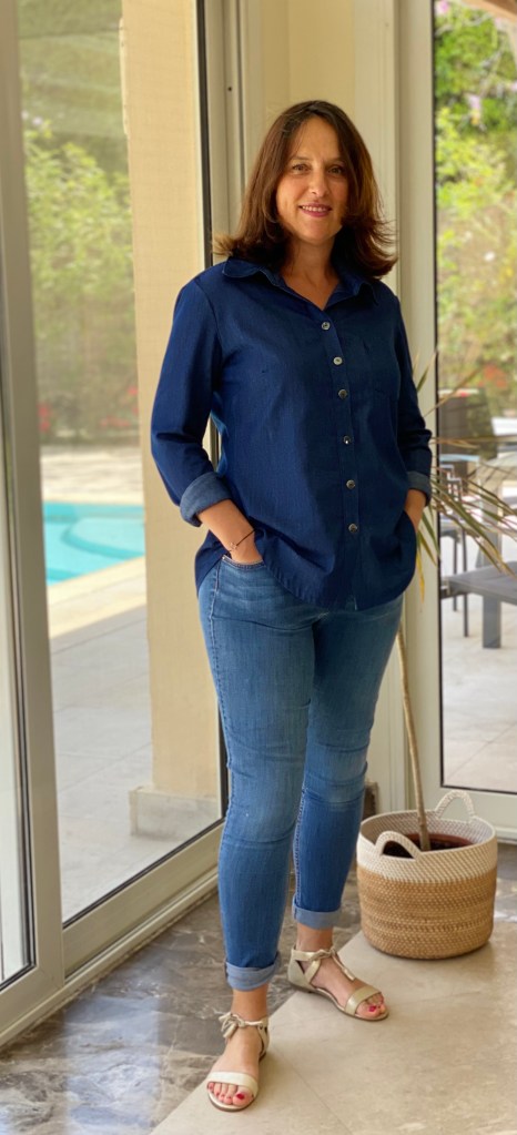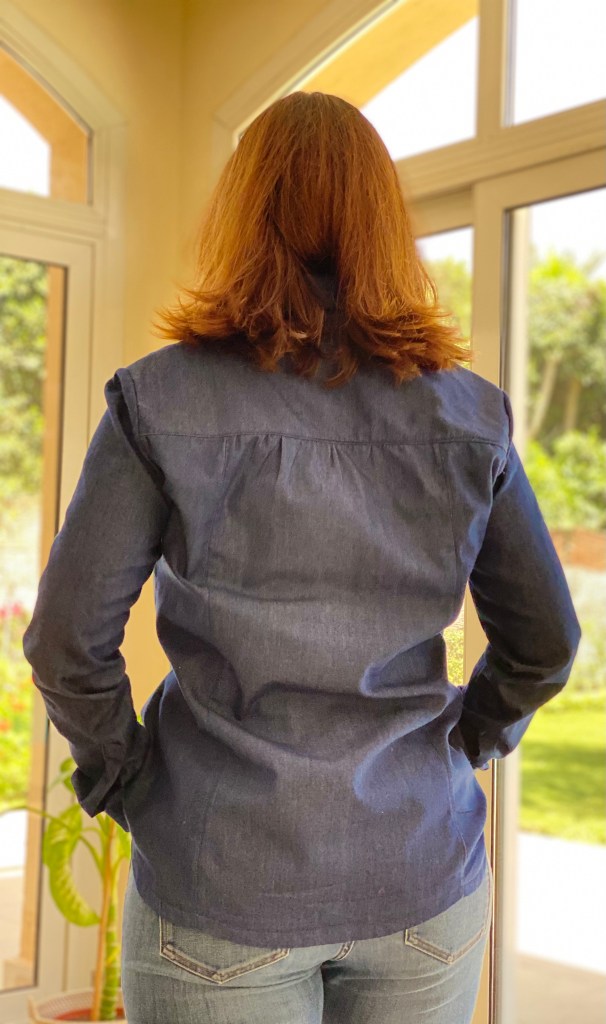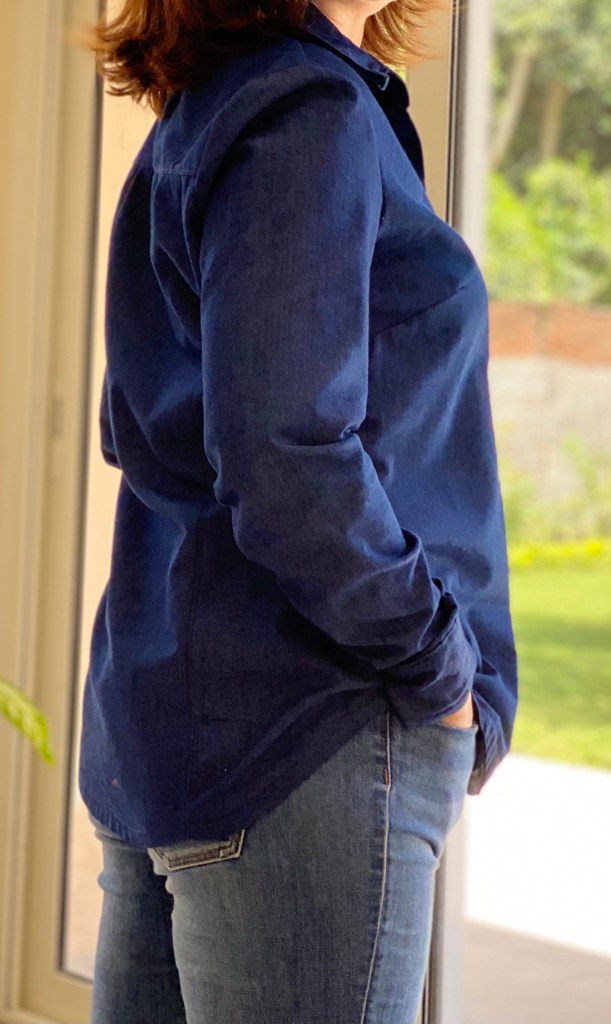 J’ai suivi le tableau des mesures et j’ai cousu la taille 10. Je n’ai fait aucune modification mais au final elle est trop longue, je trouve le col trop large. D’ailleurs pour les photos j’ai retroussé les manches car elles sont trop longues aussi.