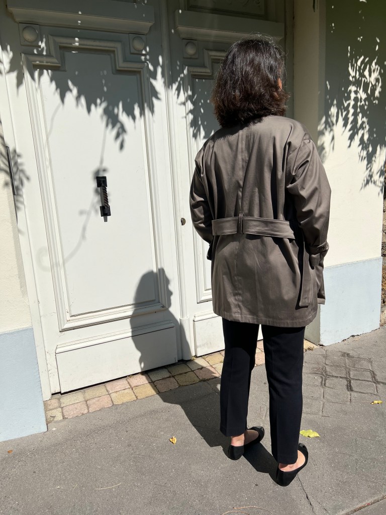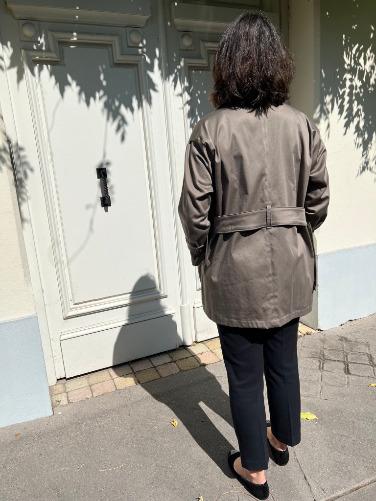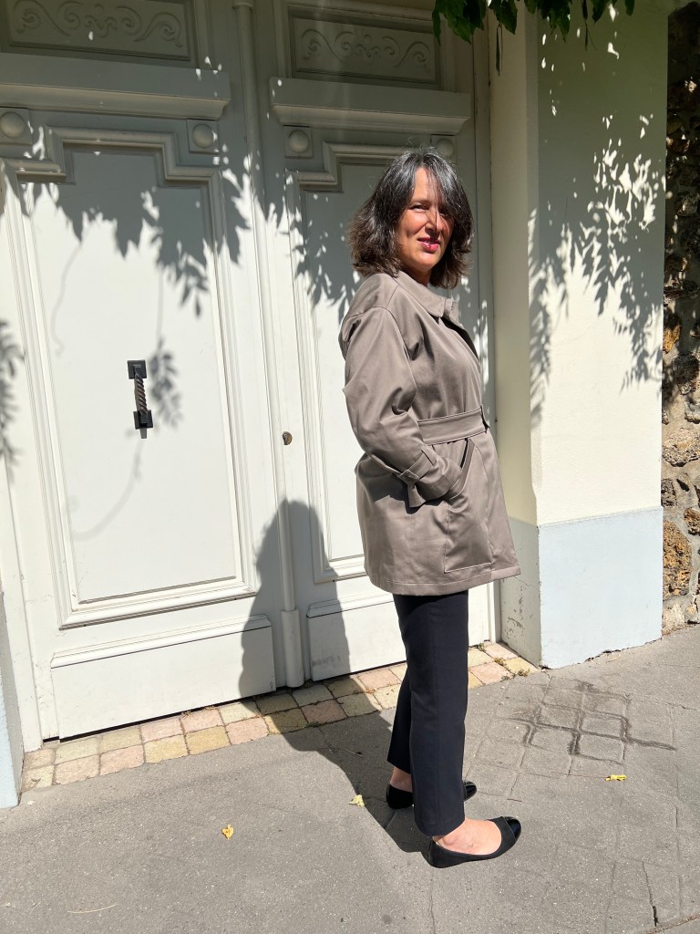J’ai choisi le modèle de veste Une veste au Sahara dans une gabardine légèrement satinée.