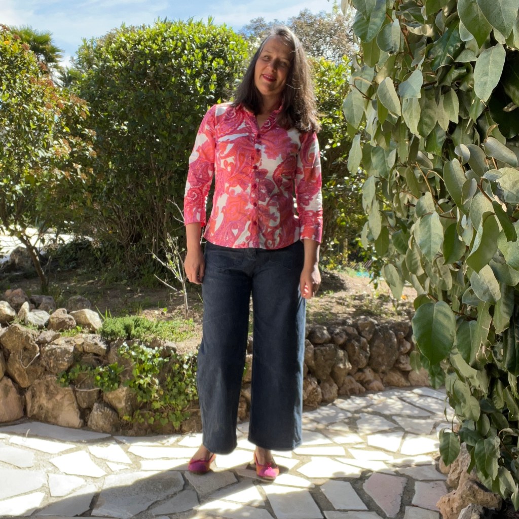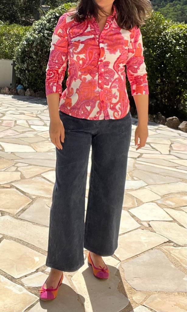1. Ah ce chemisier moi je l’ai cousu deux fois, la première était en recyclage donc pas trop de taf et la seconde fois j’ai oublié les pinces… Il faudrait que m’y remette une troisième fois pour voir si tout tombe nickel. En tout cas c’est un bon patron c’est sûr. Je n’ai pas testé de me coudre un pantalon… Jolies ballerines !
